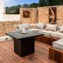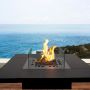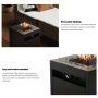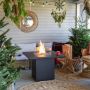Square gas fireplace comes with a robust table around it. The tabletop can be easli connected or removed at any time so you can fit the fireplace to any setting.