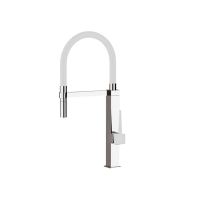 REMER - Single-lever sink mixer with flexible hose for kitchens, white X Chrome